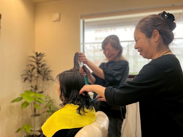 まず、地域の人たちが求めているスタイルやフォルムを作れるお姉様の技術が評判となっただけではなく、中学の頃から無添加シャンプーを使い、人工的で、加工されていない髪質を保てるお手入れ方法を追求してこられた妹様の魅力が相乗効果となって、ナチュラルなスタイルに仕上がることが地域の人たちの心をとらえ始めたのです。
